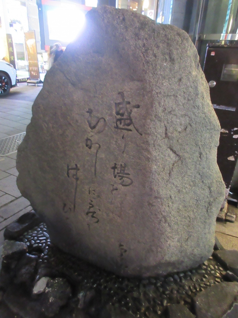 大阪の難波界隈を散策した際、道頓堀川に架かる【相合橋】を渡る手前、北側詰所にある立派な句碑が目に留まりました。【食満南北の句碑】には達筆で「盛り場を昔に戻すはしひとつ~」と刻まれており、昔は橋を隔てて町の雰囲気がまったく違っていたのかもしれません。そんな事を考えながら見学しました。説明書きがないかと辺りを見渡したのですが、そうした物は見当たりませんでした。