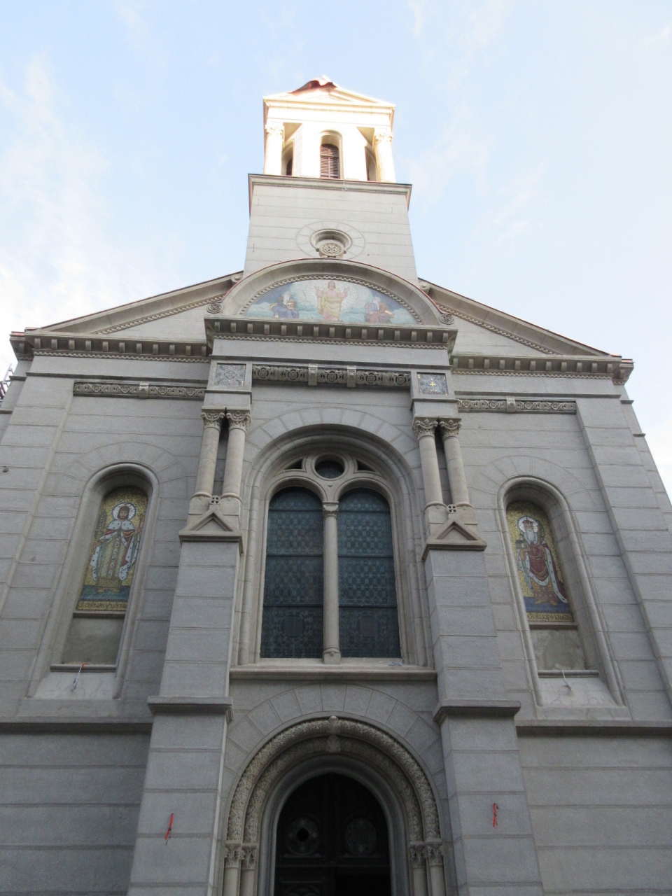 ザグレブ散策をした際、街の目抜き通りである【イリツァ通り】から少し南に入った場所にあるこちらの【顕栄大聖堂】にも立ち寄りました。【オクトゴン】というドーム天井が美しいショッピングアーケートを通り抜けた小さな広場に面していて、修復中のようで工事の足場が組まれた場所も多かったです。正面に回ると1対の聖人の絵とその真ん中上部にイエスキリストの絵が描かれていました。どことなくオリエンタルな雰囲気のある正教会風のファサードでした。