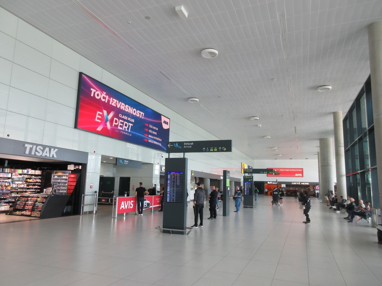 クロアチアの首都ザグレブには、空路アクセスし【ザグレブ国際空港】に到着しました。とても小さな空港で、私は国内線利用で迷うこともないと思います。国内線だったのですが、到着ゲートを出ると目のまえに市内に向かうリムジンバス乗り場の案内表示がありました。バスに乗る前に簡単な買い物をしたい場合は、ゲートを出て右手に雑貨屋がありますし、コーヒーで時間調整したい方にとは左手にカフェがあるので便利でした。
