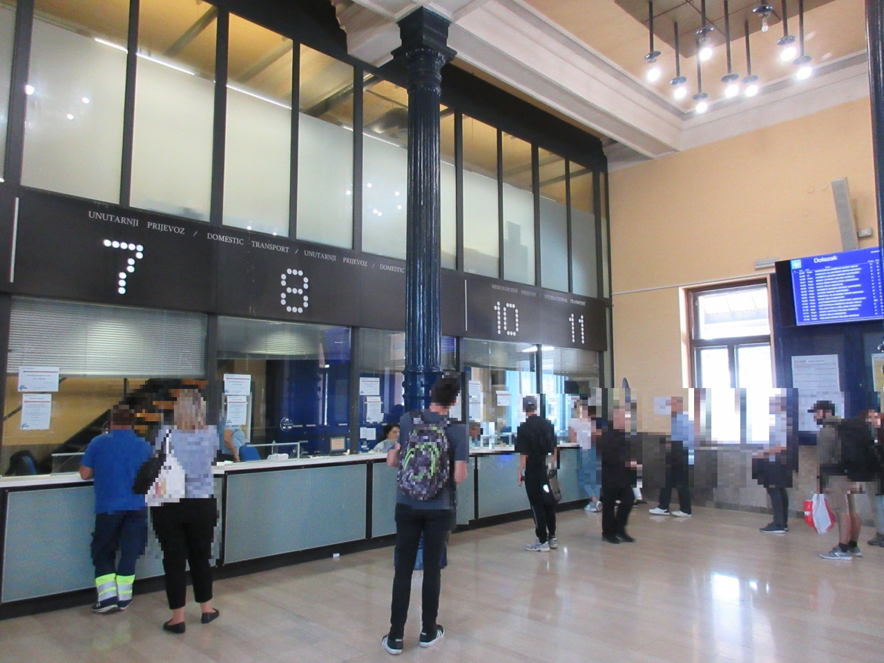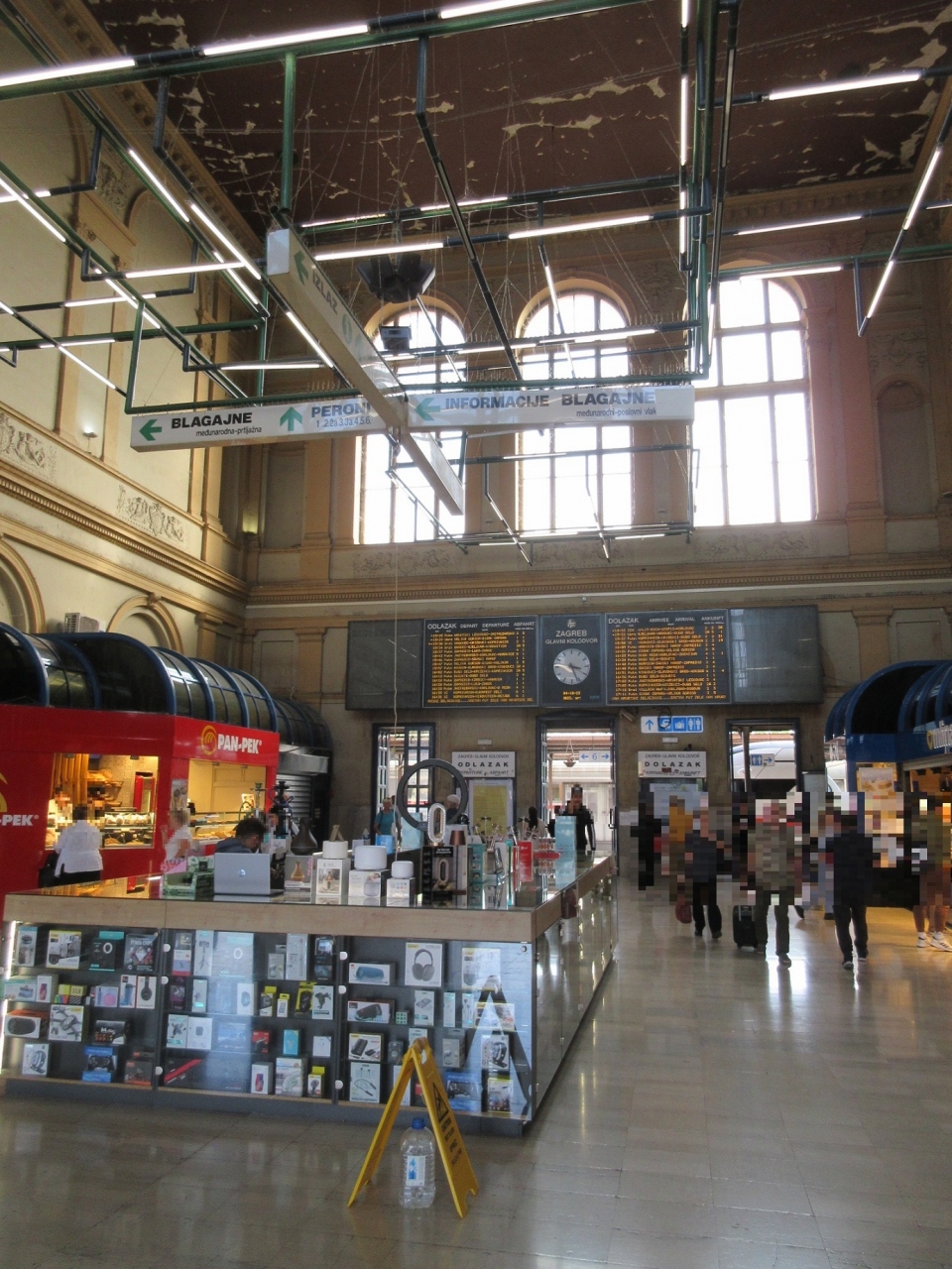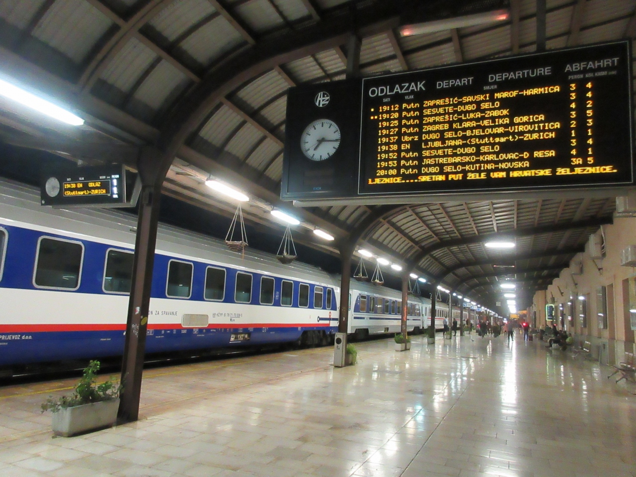 ザグレブから隣国スロベニアのリュブリヤナ駅まで列車で移動した際、こちらの【ザグレブ中央駅】を利用しました。19世紀頃の建築と思われる立派な建物で、PAN PEK というベーカリーショップや、ヘッドフォンなどを販売する発着お店が入って居ました。チケット売り場は数人の旅行者がチケットを求めていましたが、数分程度で私の順番がきました。国際列車の窓口は一番奥にあり、英語も堪能な方が対応していました。私も9ユーロで二等車のチケットを一枚無事に入手することが出来ました。