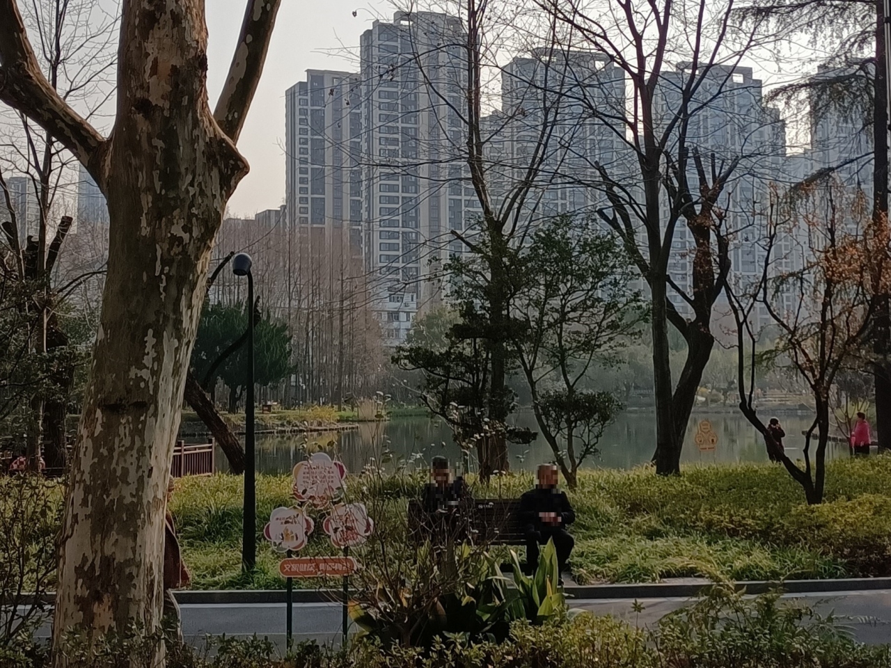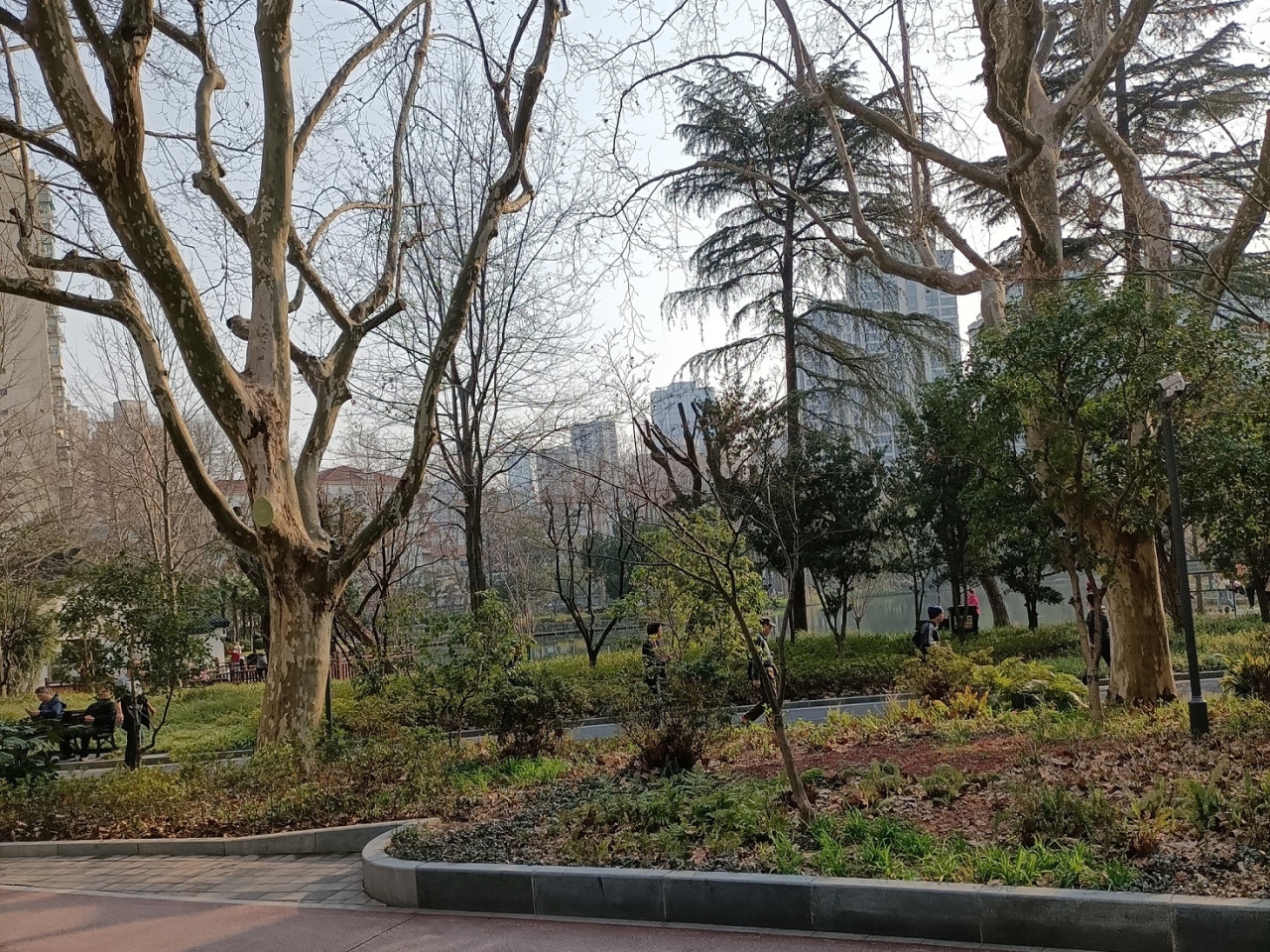 大きな人口の池の周りに遊歩道が整備されており、お年寄りが大勢散策していました。