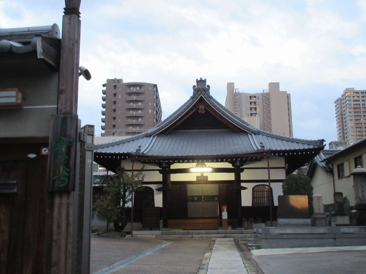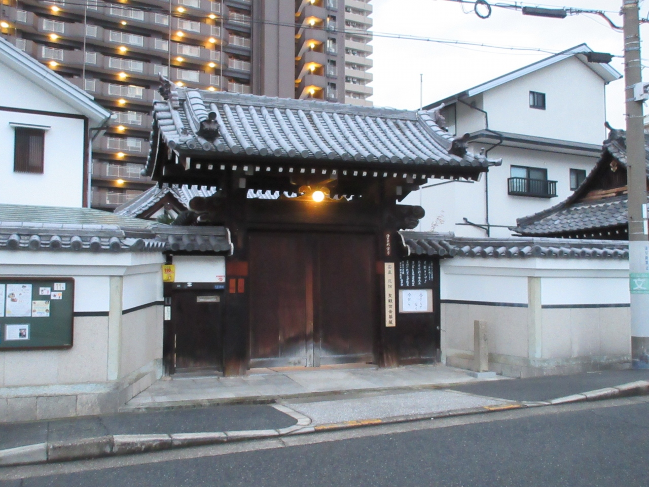 谷町九丁目の駅で下車して寺町散策した際、谷町筋沿いを南に向かって歩いている際に右手に見えてお寺の一つがこちらです。近代的で新しい鉄筋コンクリートの山門があり、白い梁、灰色の瓦という非常にすっきりとしたデザインのお寺でした。それ以外には観光的な要素は見当たりませんでした。