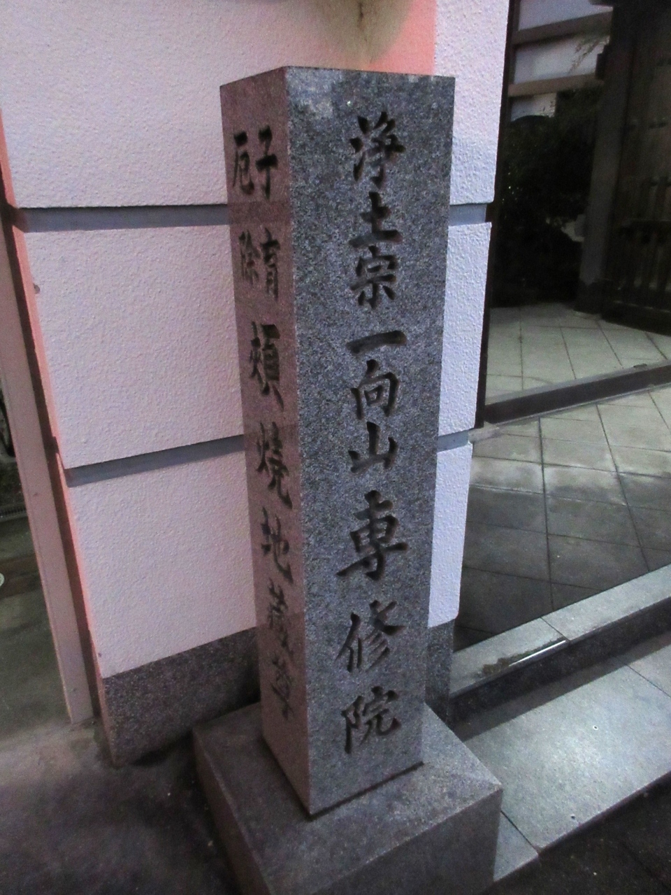 谷町九丁目の駅から中寺界隈を散策した際に立ち寄った浄土宗のお寺の一つがこちらの【専修院】です。谷町筋からは急な坂をすこし下った左手にあり、山門を入って左手に【頬焼け地蔵尊】のお堂がありました。ただ、【専修院】自体は山門を除いては近代的なコンクリートの建物で、あまりお寺の雰囲気はしませんでした。