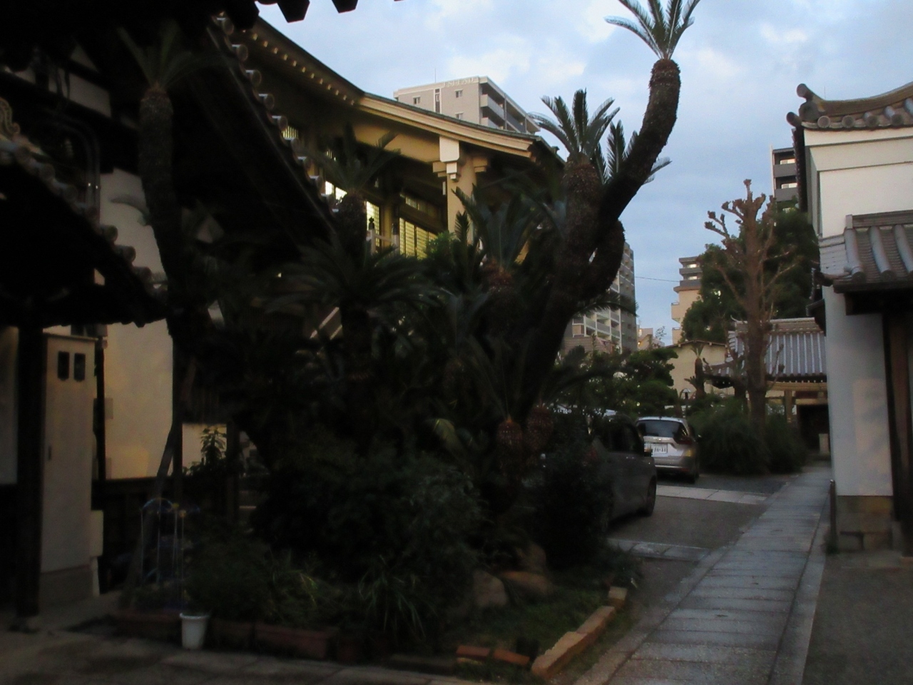 千日前線に乗って【谷町九丁目】の駅で下車、谷町線の【谷町六丁目】駅に向かって散策した際にたちよったお寺の一つがこちらです。山門はごくありふれた造りでしたが、その右手にある【田中金峰墓所】の石柱が目印になっていました。境内は右手が墓地、左手にはソテツなどが植えられており、真正面が本堂というシンプルで分かりやすい配置になっていました。