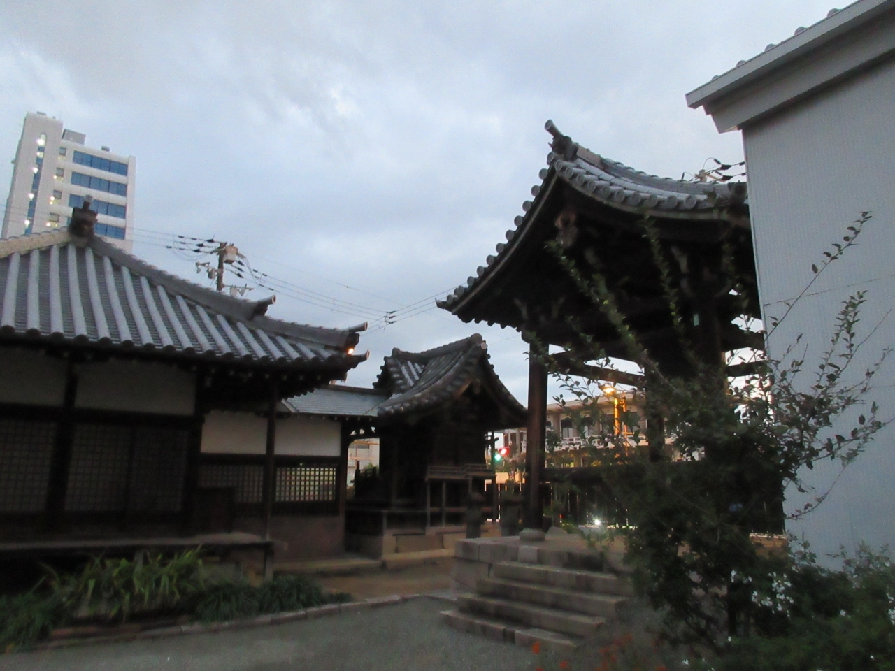 谷町九丁目から寺町界隈を散策した際、谷町筋に沿って南に向かう際にこちらの【願生寺】が右手にあって足を止めました。山門の奥には三階建て鉄筋コンクリート造りの、病院か学校の校舎にも見える本堂がありました。本堂と住職さんの住まいを兼ねているかもしれません。いわゆる境内と呼べる空間のほとんどない不思議なお寺でした。