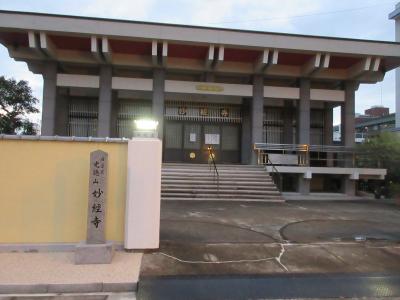 谷町九丁目駅で下車して寺町散策をした際、こちらの谷町筋に面して建つ日蓮宗の【妙経寺】の近代的なデザインの本堂が目に留まりました。都会にはこうした鉄筋コンクリート造のお寺も多いのですが、こちらは垂木のような構造物が大屋根を支えているように見せるなど、デザイン的に非常に斬新でした。ミニコンサートを開催できる文化会館といっても疑問に思わないような佇まいでした。都会にあっては非常に境内も広くて、檀家さんも車で来ても駐車することができるスペースが十分に確保されていました。