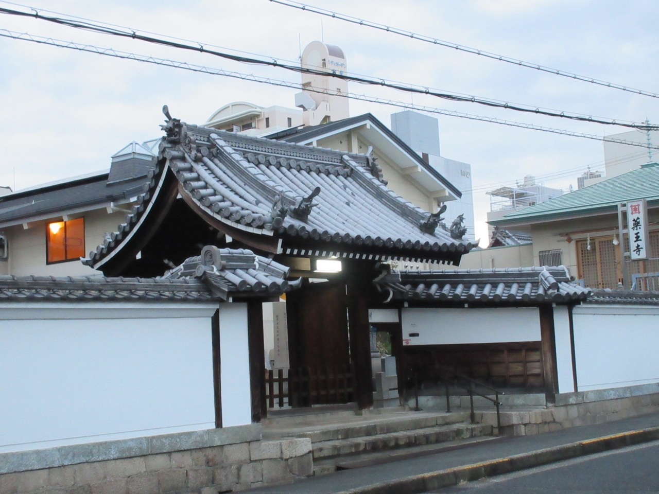 谷町九丁目の駅からほど近い寺町界隈を散策した際に、こちらの曹洞宗のお寺【大倫寺】にも立ち寄りました。少し黄色みを帯びた塀が目ぐされた境内には、灰色の甍を戴いた大きな本堂がたっていました。手前の境内は、都会のお寺らしく猫の額ほどの狭さなのですが、松など何本かの木が植えられていました。
