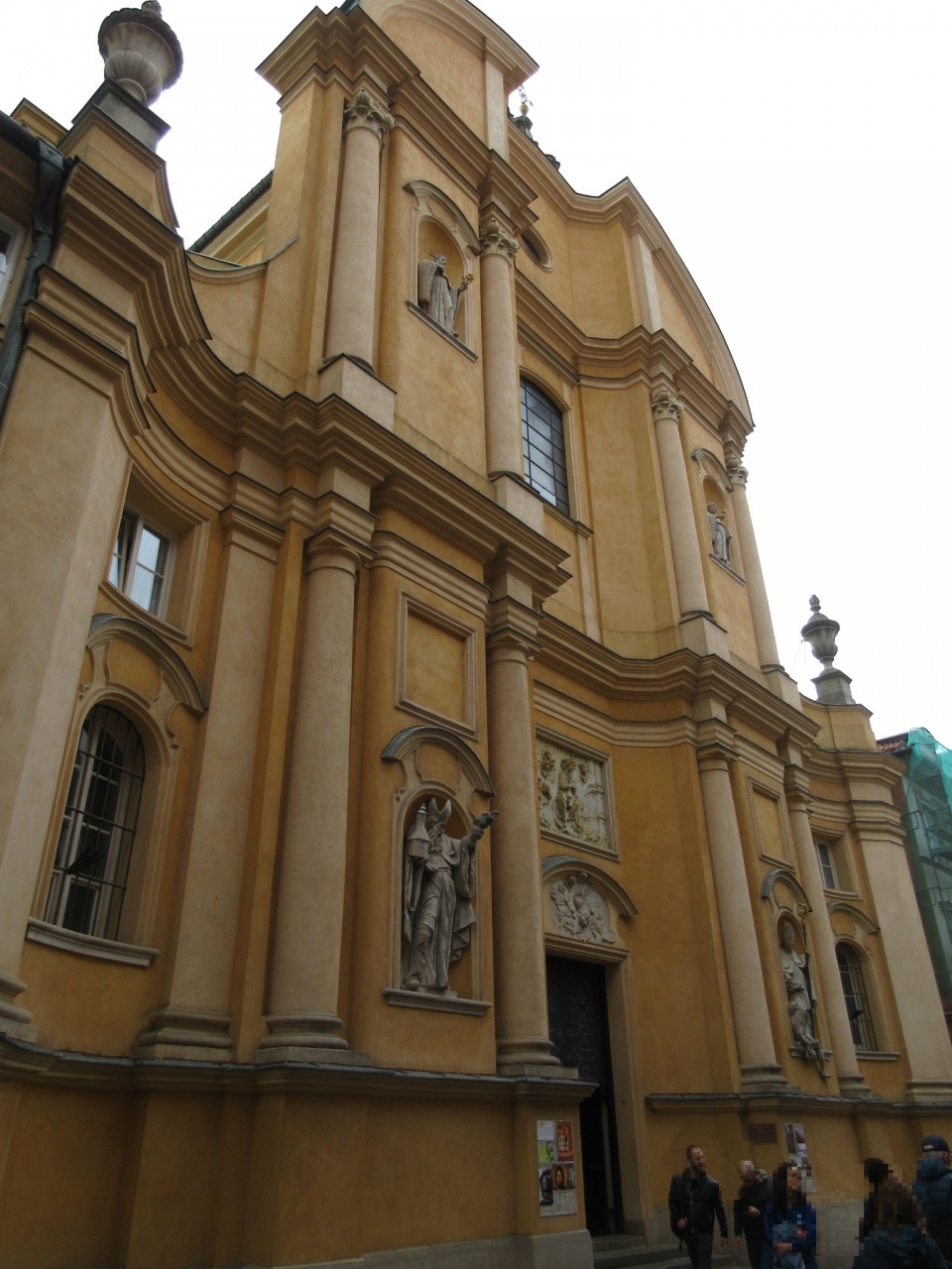 ワルシャワの旧市街を散策した際、有名な【洗礼者ヨハネ大聖堂】のある通りを散策していた際、垂直に交わる路地のレストランの先に黄色い外壁の教会が見えたので、思いきって路地を突っ切って、こちらの【マルティン教会】を訪問しました。外観はバロック建築のテイストが強い複雑な構造で、中に足を踏み入れると現代的でモダンな内装となっていて驚かされました。祭壇もいたってシンプルでした。こうしたところに、第二次世界大戦の際にナチスに徹底的に破壊された後、戦後復興されたワルシャワという街の歴史を物語っているようでした。