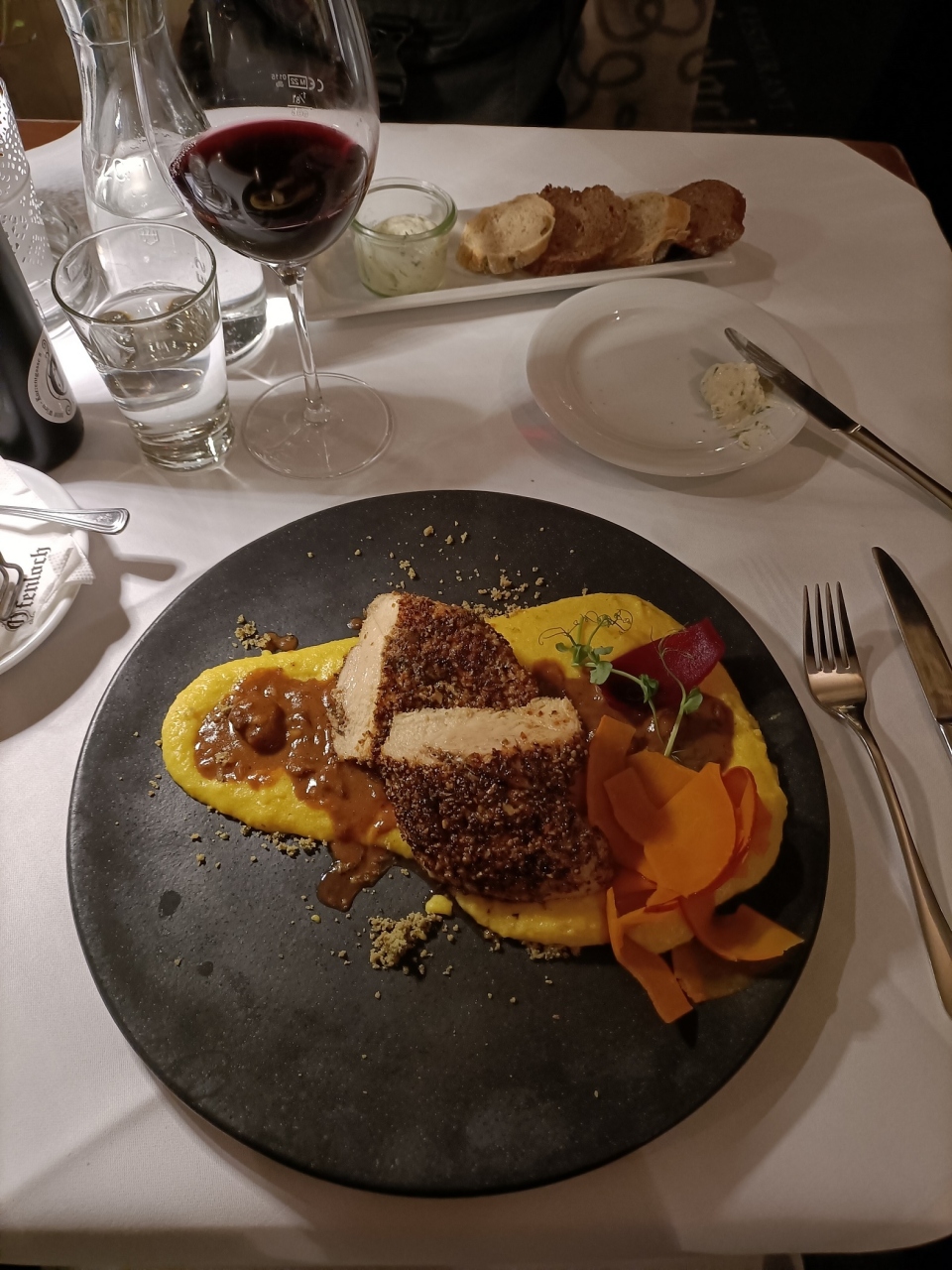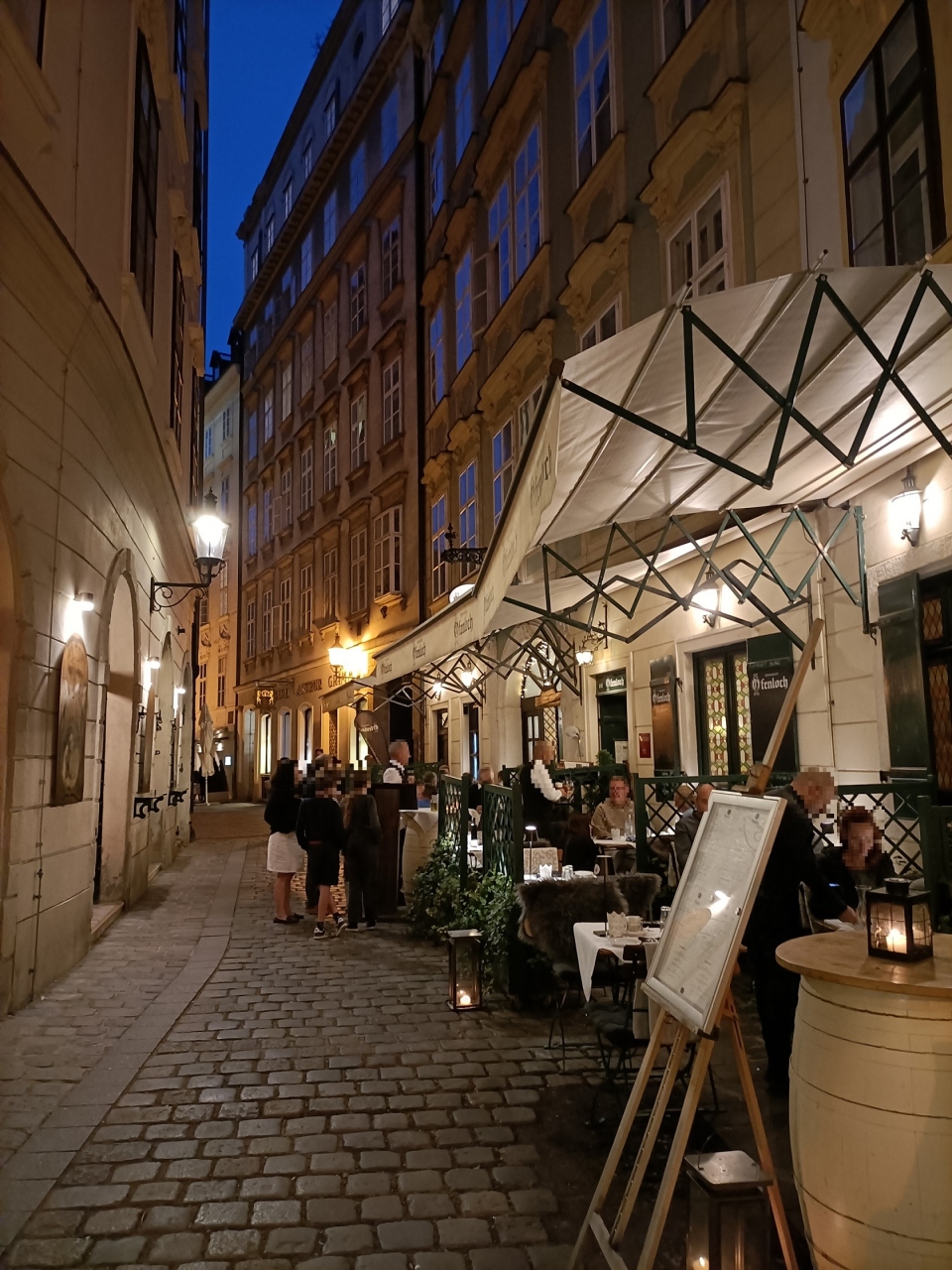 アムホーフ教会にほど近い路地裏にあるお店です。10年以上前にウィーンを訪問した際に雰囲気の良さに虜になった路地を、今回のウィーン滞在時に再訪した際に見つけて立ち寄りました。夕食の利用でしたが、一人旅の私はすぐに席に着くことが出来ましたが、数人のグループで訪れた方たちは何組も順番待ちをしていました。シュニッツェルにしようか悩んだ末、鴨肉(記憶が曖昧になっていますが)をメインにサラダ、ワインなどを頼んでお値段は5000円を優に超えましたが、雰囲気も含めて考えると十分に満足できるお店でした。