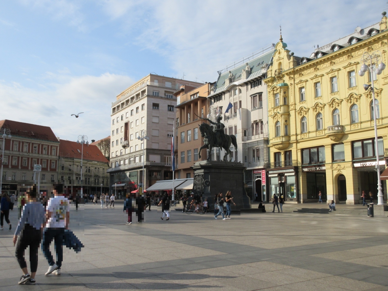 イェラチッチ総督の騎馬像を中心にして、周りをショッピングモールや銀行などの大きな建物に囲まれていました。
