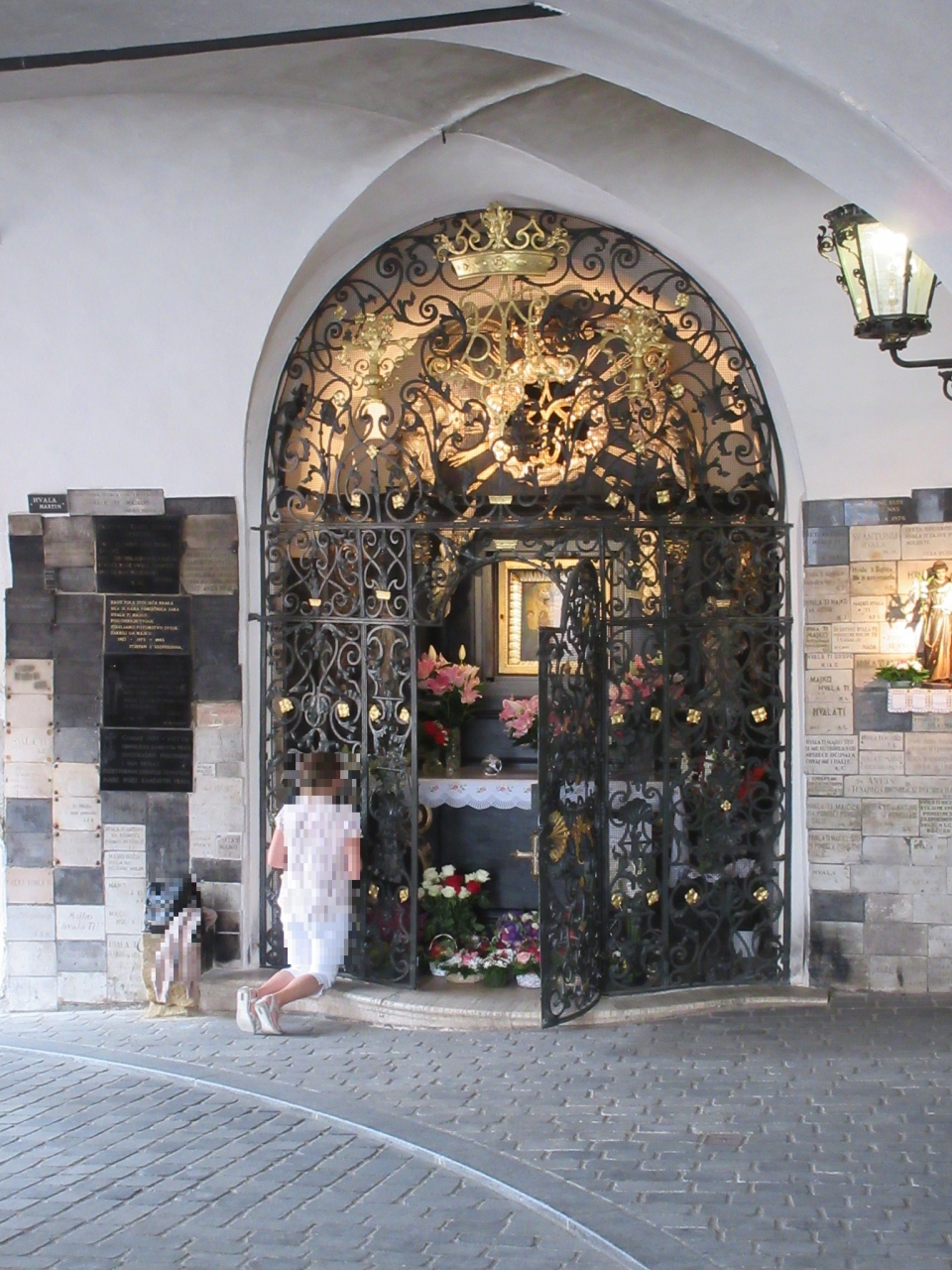 ザグレブの旧市街散策の際、【聖マルコ教会】界隈を見学した後、飲食店の多いRadiceva通りに向かう途中で通り抜けた城門がこちらです。門といっても日本でいえば櫓門のような建物の1階を通路として使っているような建物で、この通路がL字に曲がった場所には小さな祠のような礼拝堂も置かれていました。ザグレブ市民の方がお祈りをささげている姿に、日本のお地蔵さんやお稲荷さんのような存在と相通じるものを感じました。