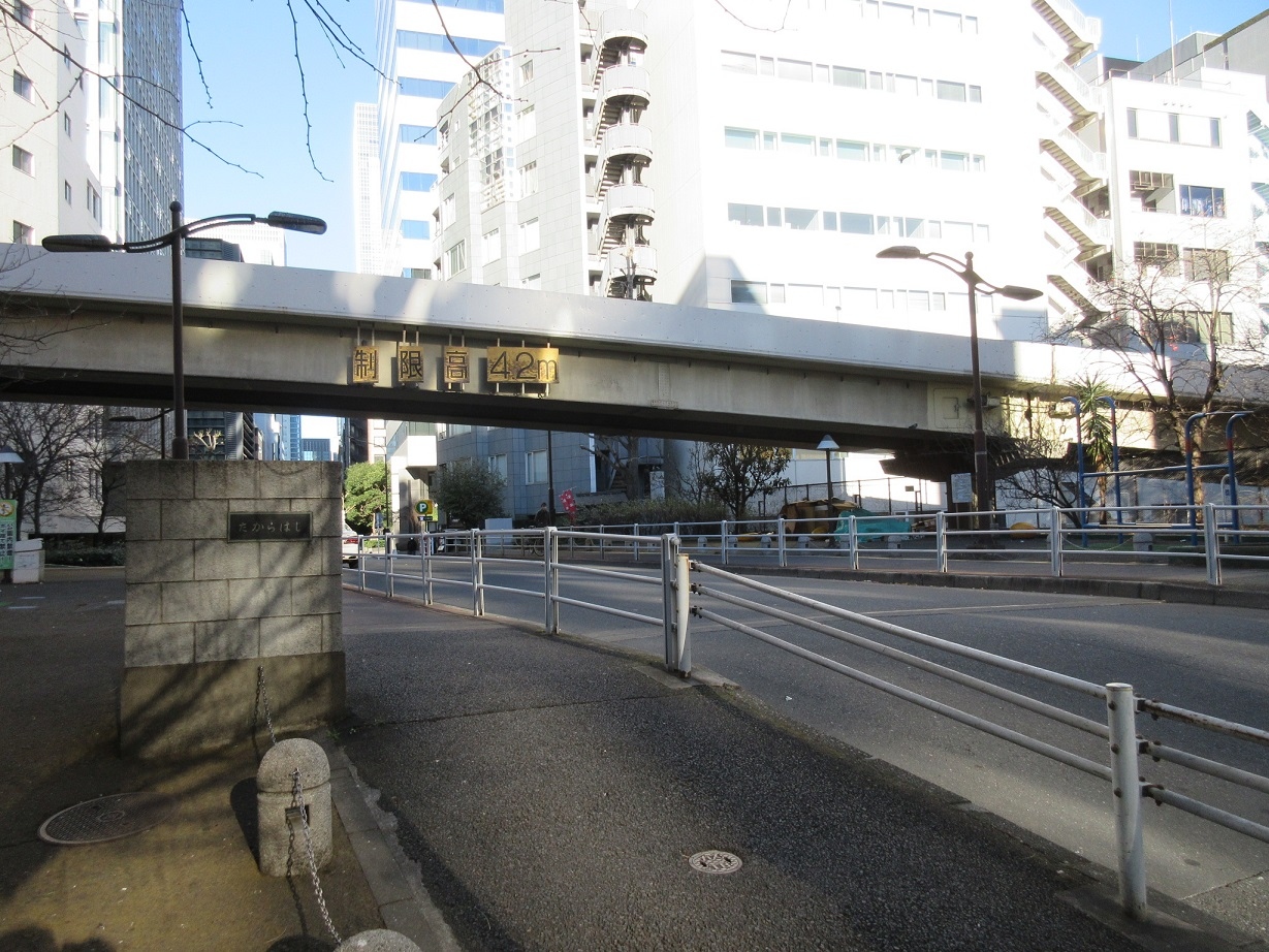 茅場町、新川から京橋方面に向かって歩いた際、こちらの【宝橋】を渡りました。首都高の高架道路が上に走り、下もかつての楓川は既に埋め立てられていて道路になっており、都会の味気ない橋の一つでした。幅員はさほど広くありませんが、車道と歩道がきれいに分離されている点は交通安全の面でも評価できると思いました。