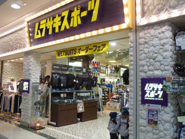 ご存じスポーツの専門店のムラサキスポーツです。イオンモール鶴見緑地店にも入居しており、店内にはサーフィンやスノーボード用のアイテムや、スポーツウエアやシューズなども豊富に揃っていました。普段着としても使えるトレーナーなどもあるので、スポーツアイテム専門店として以外にも、衣料品店としても利用価値が高いと思いますね。