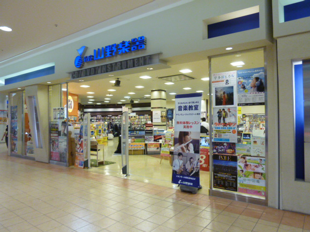 イオンモール鶴見緑地店の中にある楽器や楽譜の専門店です。ピアノからギター、管楽器など豊富に扱っています。特にバンドをやっている若者が喜ぶようなエレキギターや関連商品は特に充実していますね。逆に昔ながらのハーモニカのような物は、ことによると私の探し方が良くなかったのかもしれませんが、些か品薄な感じがしました。