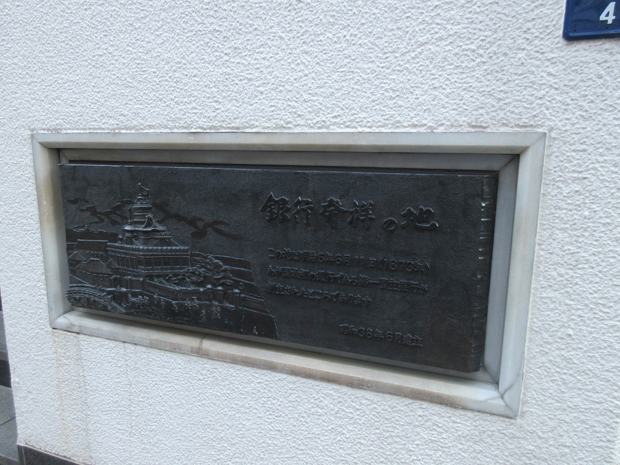 みずほ銀行の店舗の1階、ATMのそばの壁面下の方に【銀行発祥の地】を示す金属のプレートが設置されていました。