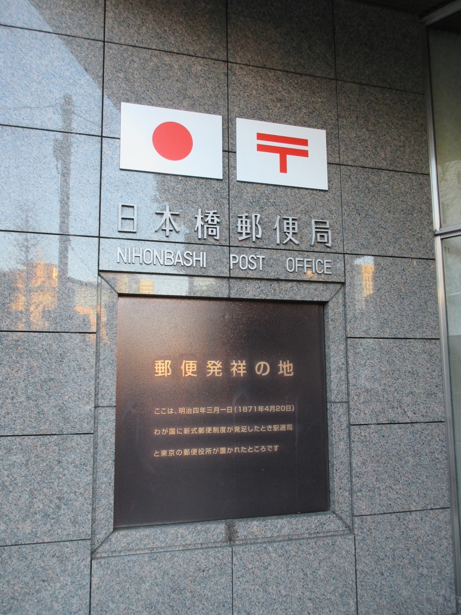 日本橋郵便局の今の建物は、もちろん後世になって建てられた物ですが、1871年にここから郵便事業がこの地から始まった旨の説明がされていました。