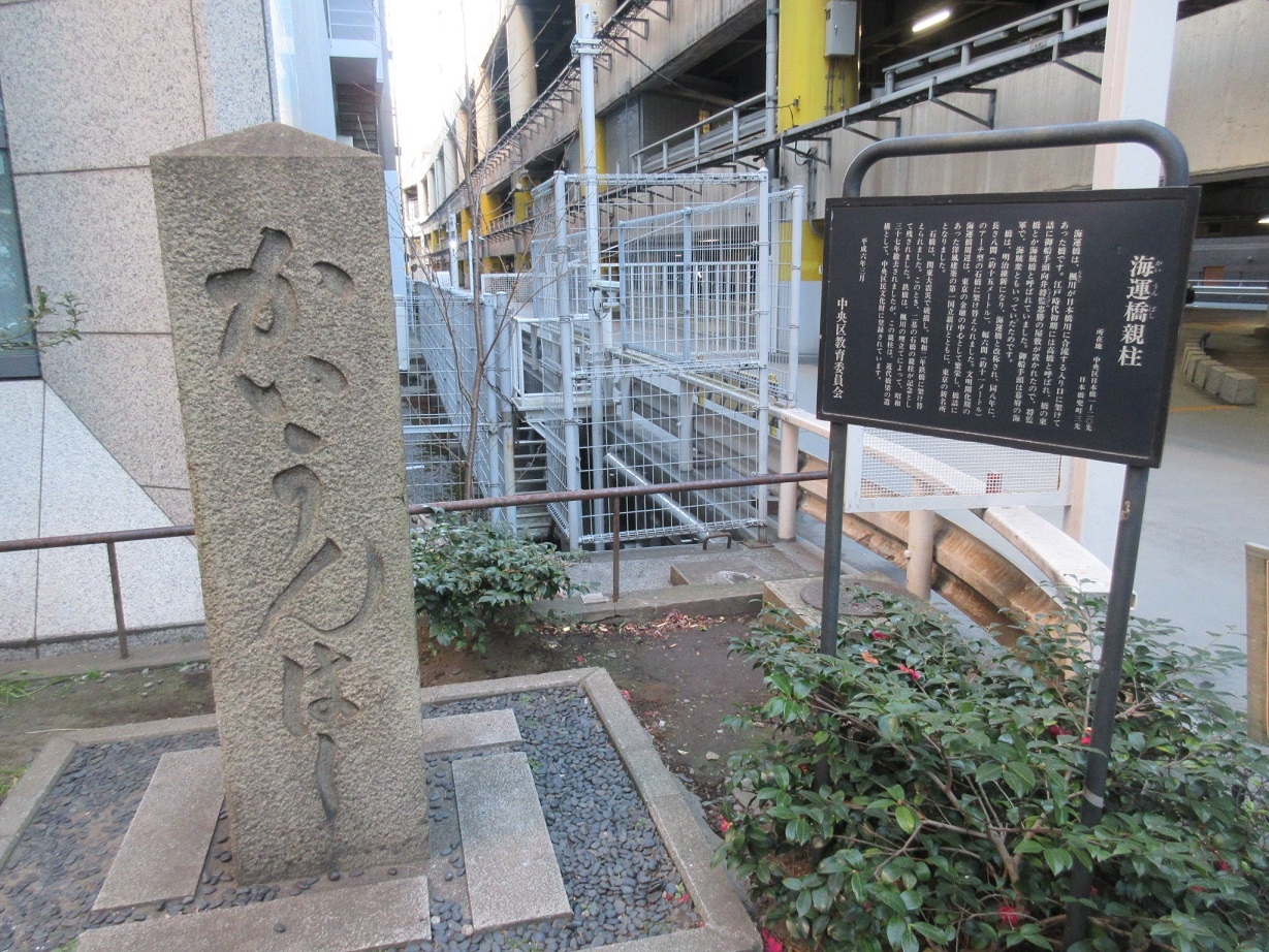 兜町界隈を散策した際、みずほ銀行の支店の西側にある首都圏のました辺りに、【海運橋親柱】が日本残されて居ました。1本は説明文もありますが、もう1本は植え込みの中で少し見つけにくかったです。今は埋め立てられていますが、説明文を読むとかつては川が流れていたことを知りました。