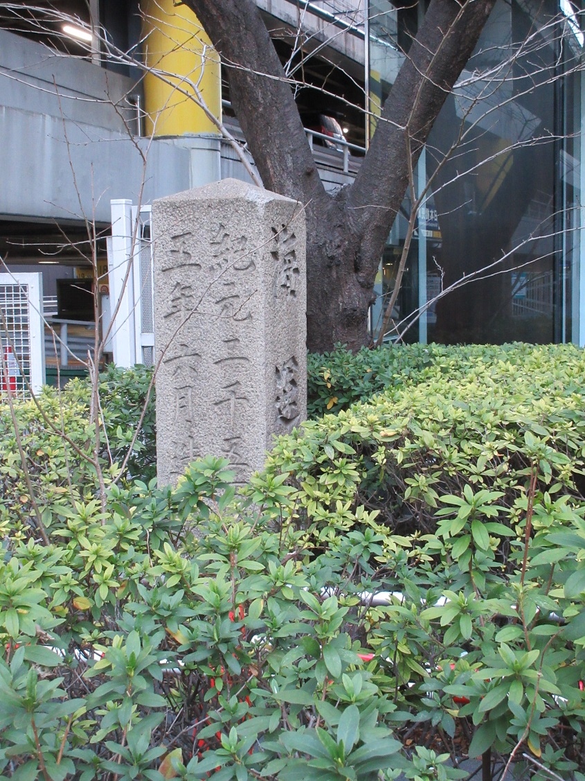 茅場町界隈を散策した際、ありふれたオフィスビルの手前に小さな石碑があるのに気が付きました。松尾芭蕉のお弟子さんといわれる俳人の【其角の住居跡】とのことですが、柴犬程度の高さなので、よほど注意していないと見落としてしまうだろうと思える小さな石碑でした。