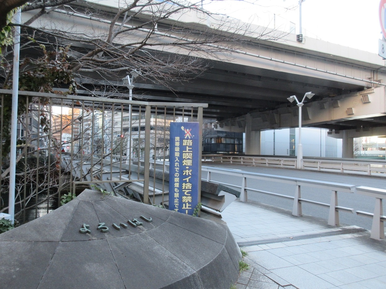 東京証券取引所のすぐそばにある、日本側にかかる橋がこの【鎧橋】です。久しぶりに東京中心部を歩いたのですが、橋のたもとには「路上喫煙禁止」「携帯用吸い殻入れも禁止」と記載された立て看板もあり立ち止まる人も皆無でした。ぼーっと川を見ながら一服と思っても叶わない時代になりました。もっとも、この川の上には首都高が走っていて、景観はお世辞も良いとは言えず、味気ない橋だと感じました。