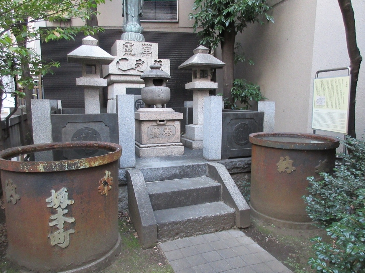 近代的なビル群の中に、江戸時代からの手水桶が置かれていました。