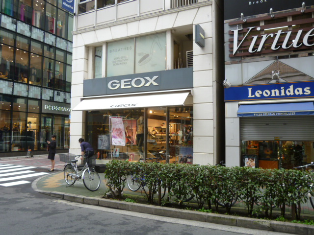 イタリアで誕生した靴ブランドGEOX(ジェオックス)の日本での旗艦店です。ラバーソールが特殊な製法で作られていて、湿気を呼吸して放出する機能性シューズです。日本は湿度が高いので、こうした靴はニーズがあるのでしょうが、訪問したのが秋ということもあり、あまりお客さんが居ませんでした。