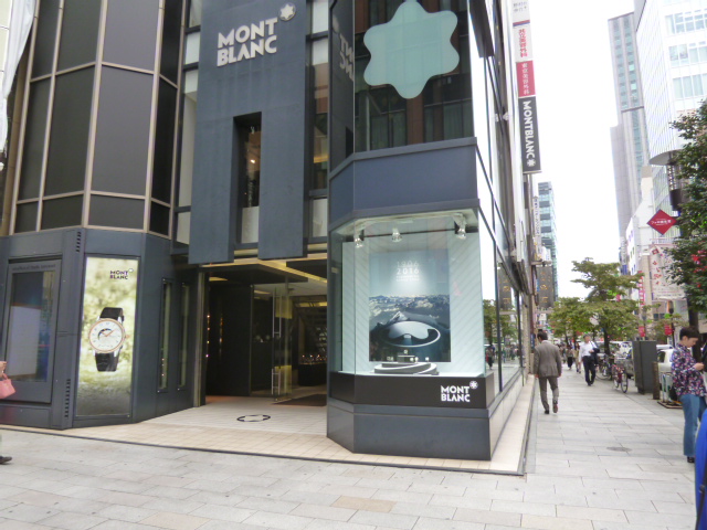 万年筆で有名な銀座にあるモンブランのブティックです。万年筆以外にもボールペンなど筆記用具を多数扱っており、贈り物としても喜ばれる風格を感じます。また、私も知らなかったのですが、時計も扱っているようで、1階入口にも紹介のポスターが掲載されていました。