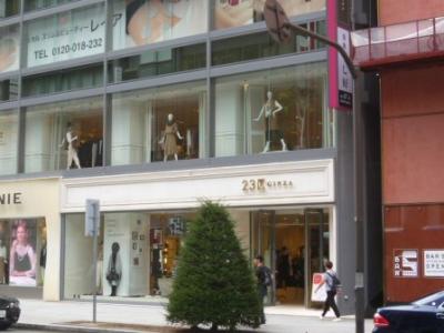中央通りの八丁目、新橋に近い場所にオンワード樫山のブランドである23区のショップがあります。百貨店を初め見かけることも多く、知名度の高いレディスブランドです。1階と2階を使った大型店舗でO/Lに好まれそうな上品でシンプルな商品が充実していました。