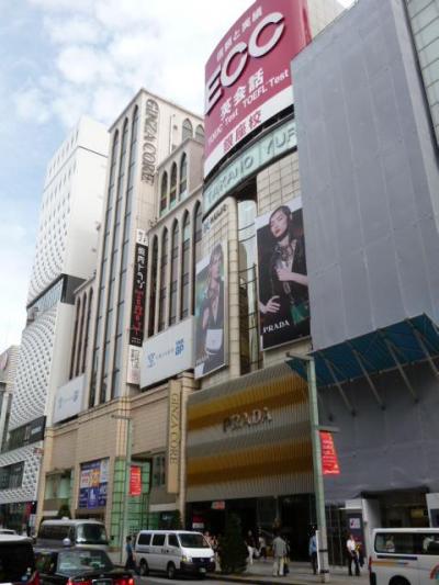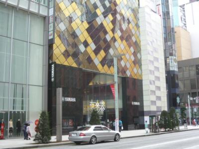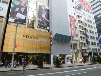 銀座五丁目の中央通りに面したプラダの旗艦店です。バブルの頃に一世を風靡し、街を歩けばプラダの鞄を見かけない日が無いという位に人気がありました。金色に輝くバブル期を彷彿とさせる外観の店舗には、中央通りに並んだ観光バスから降りてきた外国からのお客さんも多く訪れていて、大変込み合っていました。