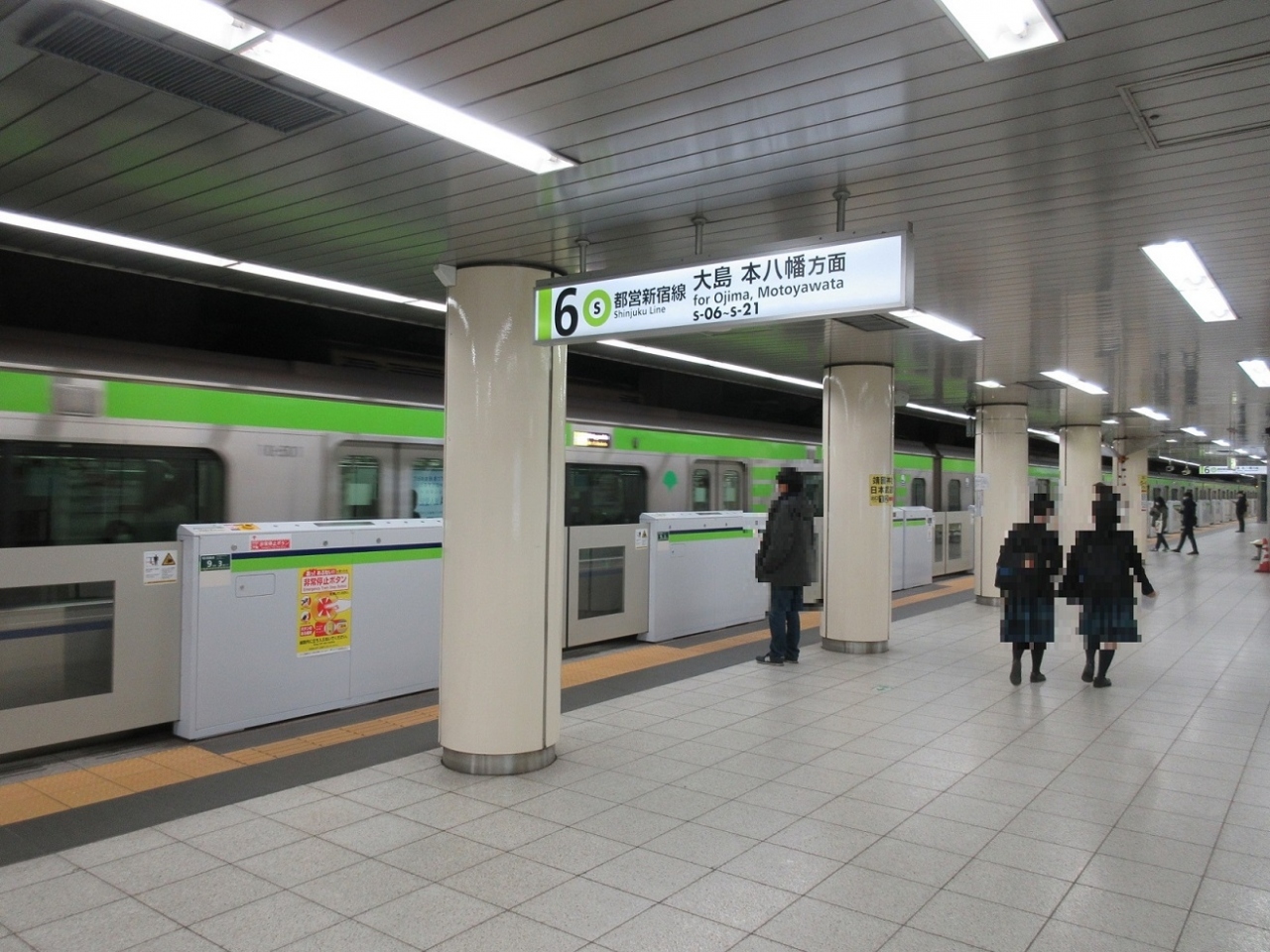 新宿駅から九段下まで【都営地下鉄新宿線】を利用しました。JRの新宿駅から地下鉄の改札を通り地下に向かって一気にエスカレーターを降りていきました。ここまでは良かったのですが、都営12号線に行く導線と別れるところから、エスカレーターではなく階段になってしまいました。大きな荷物があったのでエレベーターを探そうかと迷いましたが、時間も厳しかったのでそのまま階段でホームまで降りました。改札を入ったところで、もう少し新設な案内標識など用意してくれたら助かりますね。