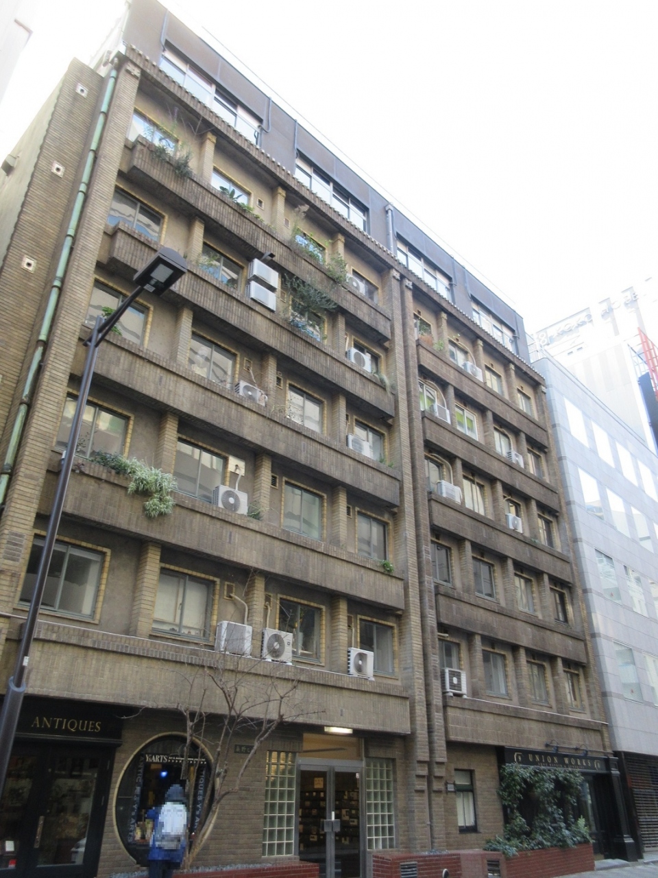 フォートラベルで紹介されていたので、銀座散策の際に立ち寄りました。関東大震災後に建てられた古いビルで、外壁のタイルが縦方向に縞の入ったデザインで特徴がありました。ほぼ同じ時代の上海のマンションでも似たようなタイルを使った物があるので、当時の流行だったのかもしれません。ビルはアンティークショップや美術系の仕事に従事している方が好みそうな、昭和レトロな雰囲気でした。欲を言えば、エアコンの室外機はむき出しではなく、上海や蘇州の水郷の村で利用しているような、鎧戸のような形状の茶色の囲いを取り付けるとより景観が美しくなると思いますね。