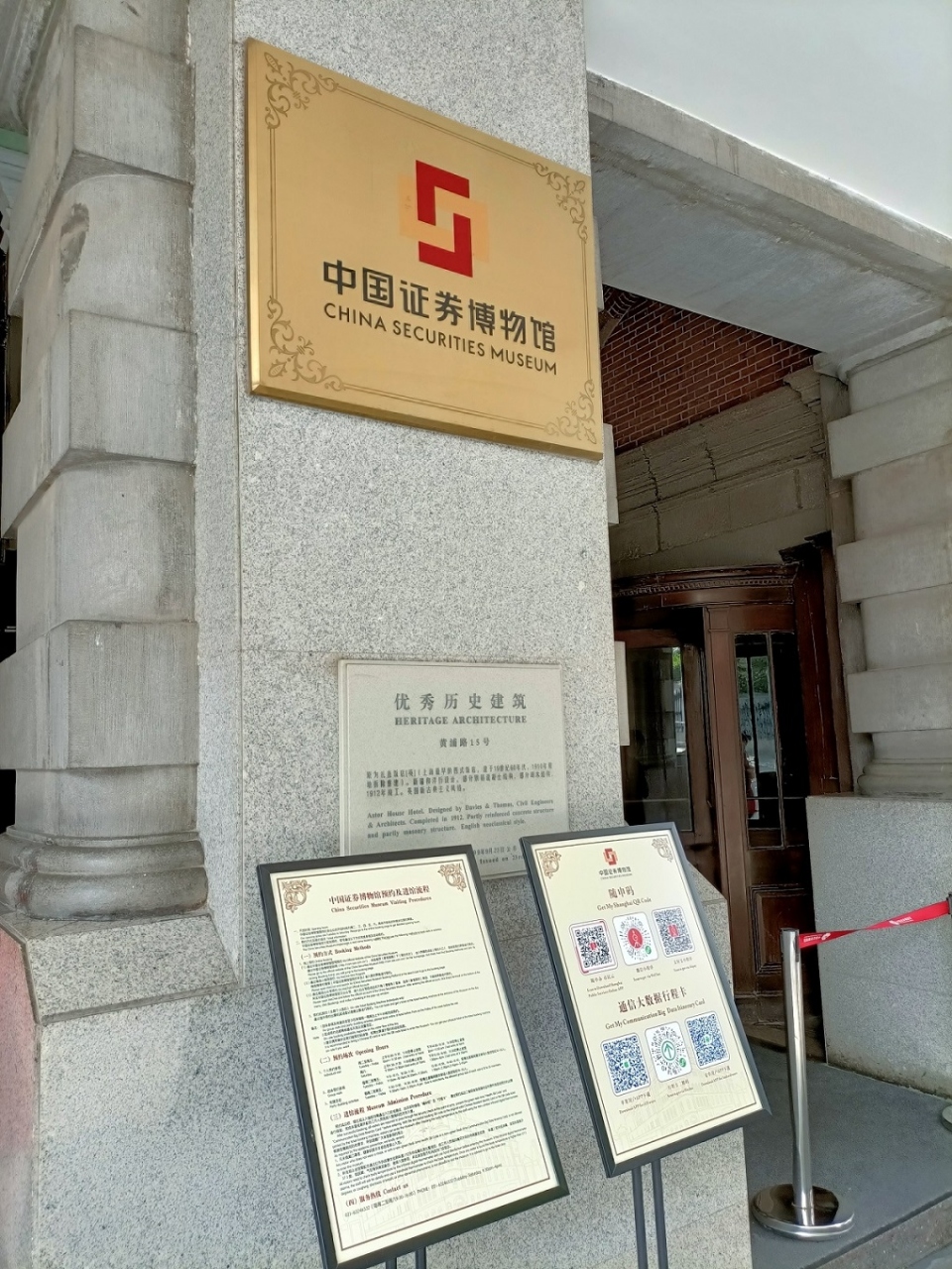 1912年に竣工した浦江飯店の新古典主義様式の歴史建築を使った博物館で、中国における証券取引の歴史などを展示しています。そうした証券取引に関する展示よりも、チャップリンなど世界の有名人が宿泊したこともあるクラシックなホテルの内部を見学できることも魅力の一つです。私が訪問した2021年は、スマートフォンを使って、新型コロナ感染対策のQRコード「健康コード」を係員に見せて入場する必要する必要がありました。オープンして間もない時でしたので、大勢の方が入口で順番待ちしているのが印象的でした。