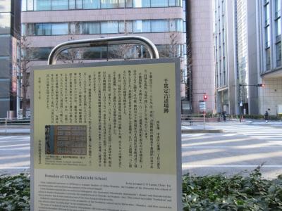 有楽町からほど近い京橋界隈を散策した際、鍜治橋通り沿いに【千葉定吉道場跡】の説明板を見つけました。町割りの古地図も入った大きな四角の説明板で、それによると江戸時代末期の三大道場の一つであり、「北辰一刀流」という流派があり、坂本龍馬も通ったとのこと。今はオフィスビルのこの場所で、100年以上前に武士の心得としての剣術の取得にいそしむ坂本龍馬の姿を想像してみるのも一興でした。現在の東京の街を歩いていたら銃刀法違反で即逮捕されますが。。。