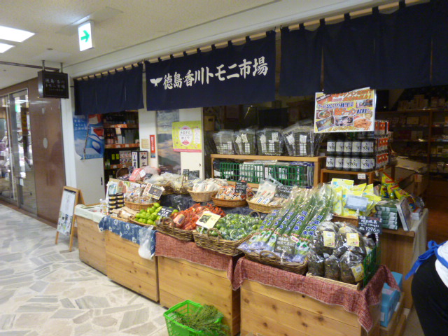 有楽町駅前の東京交通会館1階に入っている徳島県と香川県が共同で管理しているアンテナショップのようです。それぞれの県の特産品を扱っていて、どうしても「うどん県香川」の讃岐うどんに目が行ってしまいますね。もちろんうどん以外にも産地直送の農産品も少々お値段高めなのですが豊富に扱っていて楽しいですよ。