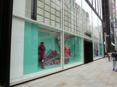 銀座三丁目にあるシャネルのビルで、高級ブランドショップが並ぶエリアでもひときわ目立つガラス張りのお店です。私が訪問した時には、季節の変わり目なのかワインレッドのインパクトの強いディスプレーがされていて、プライドというか時代の先端を行くのだという自負心まで感じられました。