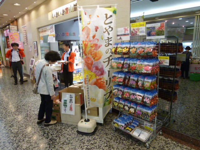 東京交通会館の中には日本各地のご当地グルメや製品を扱うアンテナショップが多数集まっています。そうした一角に富山県のアンテナショップがあり、のぞいてみました。富山県らしい海産物や、県花であるチューリップの球根などもあって、包装に印刷された写真も色とりどりで魅力的でした。私の住まいに庭は無いのですが、一つ購入してプランターを使って育ててみようかと迷うほどでした。