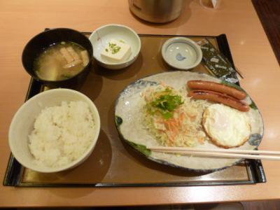 前日大阪観光でしっかりと歩いたため、翌朝も朝からしっかりと食べようと思い利用しました。朝定食は400円程度からありお得です。ソーセージの定食の他にも納豆定食などもあります。御飯もお替わりが出来ますよ。