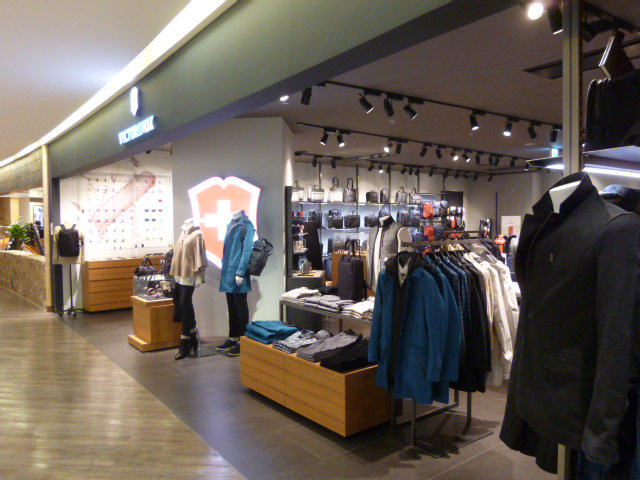 グランフロント大阪の南館にある、アーミーナイフで有名なスイスブランドのショップです。ナイフ以外にも登山&アウトドア用品の総合ブランドのようで、パーカーやレインウェア、登山用の鞄など豊富に取り揃えていました。