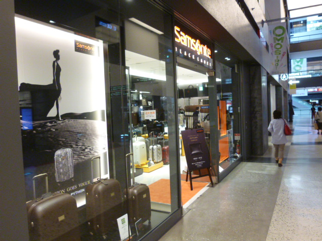 旅行鞄以外にも豊富な品揃えの世界ブランドのサムソナイトが、グランフロントの北館に入っています。サムソナイトは大手鞄専門店A社が以前は手掛けていたように思いますが、今は違うようです。スーツケース以外にもビジネスバックなどもあります。