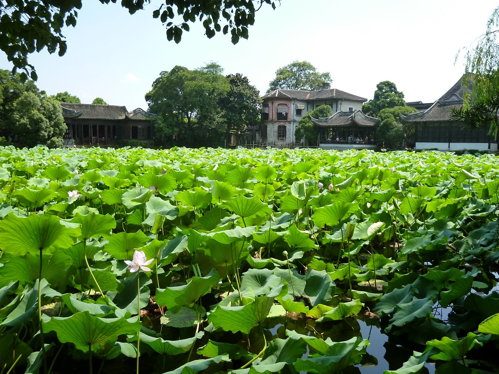 南潯に到着するバスが何台も停車する駐車場からすぎ近くにあり、ここがメインの入口となっています。見学すべきポイントを見逃さないよう、まずはここで地図をもらってから歩き出しましょう!丁度チケットを購入して南潯古鎮に入るとすぐ、蓮が広大な池を埋め尽くす様が美しい「小蓮庄」があって、ここから見学する人が多いですね。