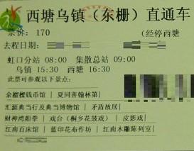 上海から江蘇省・浙江省の水郷村へ行くバスが発着します。ツアーバスはもとより、往復のチケット台と現地での観光地への入場料がセットになったガイドなしツアーが利用できます。南潯や烏鎮などを訪問する際に便利です。現地で宿泊したり、時間に制約されずに動きたい方は、上海駅や上海南駅のバスターミナルからの通常の中長距離バスの方が良いでしょう。