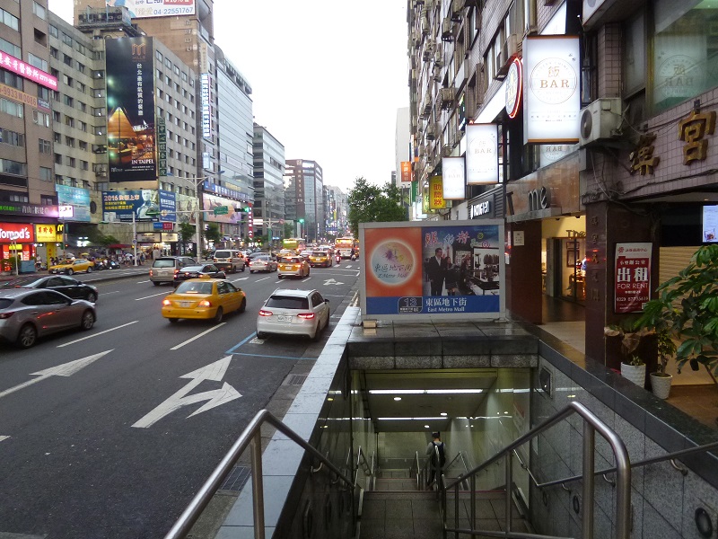 忠孝東路は、市政府駅を東に超えると五段となります。右手が統一阪急百貨店や信義新天地です。