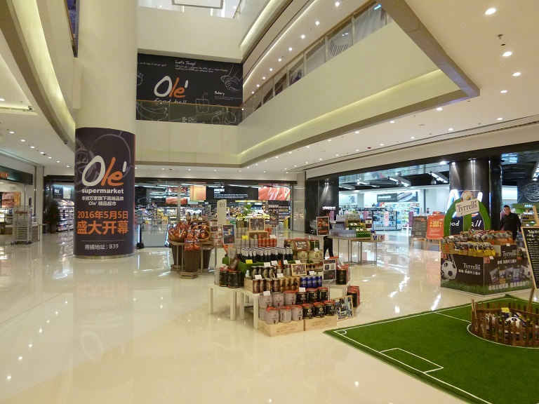 2016年5月5日にオープンした中国系高級スーパーです。Ole'は上海でも富裕層や外国人の多いエリアに何店舗かあり、見かけることが多くなりました。大連では2店目になります。中国系スーパーですが、外国からの輸入食材が豊富で、ワインやチーズなど明らかに高級路線です。入口のロゴも洗練されたデザインで、ここ10年ほどで中国のデザイン力が先進国レベルになったと実感します。