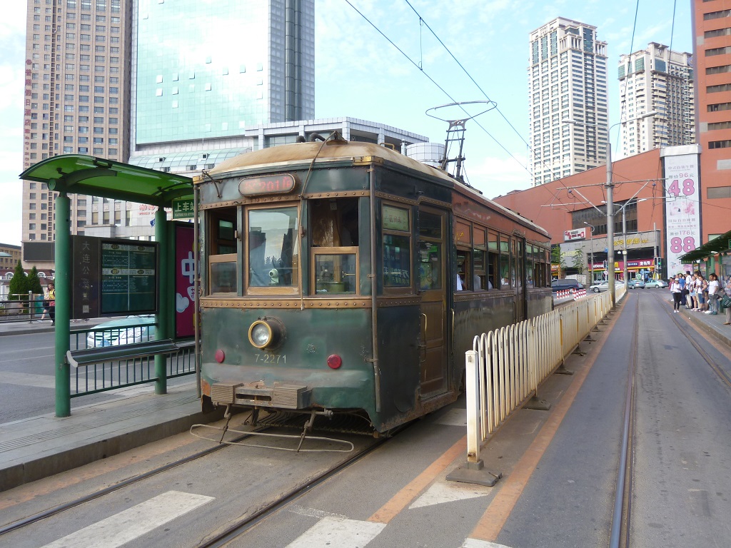 新型車両に交じって、旧満州の時代から使われているレトロな車両が現役で走っています。それに乗る為に停留所で何分も待ちました。モスグリーンと小豆色がありそれぞれ良い味を出しています。長崎や高知、広島などの路面電車と比べてみるのも一興です。また、大連駅南口広場の停留所は、降車用と乗車用で数m離れており、まず降車用の客を下し、それから乗車する客の待つエリアに進みます。通常のバスとは異なるのでご注意を。