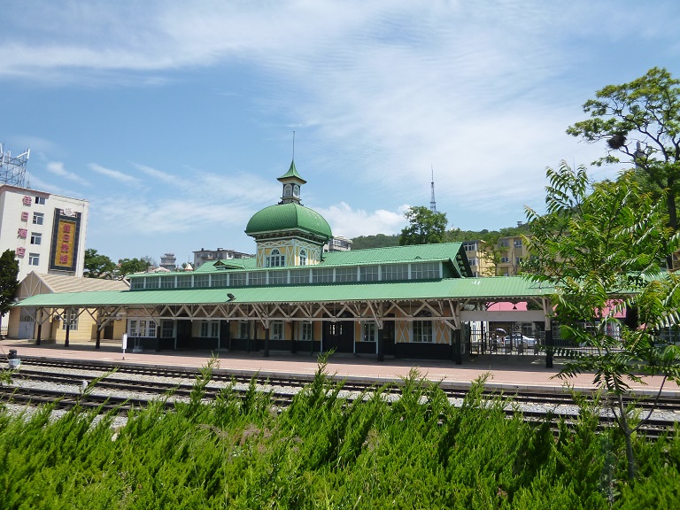 現在大連から旅順への直通列車は運行されていないようです。旅順中心部から旅順博物館や203高地方面に向かう幹線道路にそった場所にあるので、途中見学することができます。海側には海軍の設備があるので、駅舎から西に抜けたところから山が背景に入るように撮影するようにしましょう。つまらない事で公安に睨まれたり、外交のカードとして利用されたくはないので。