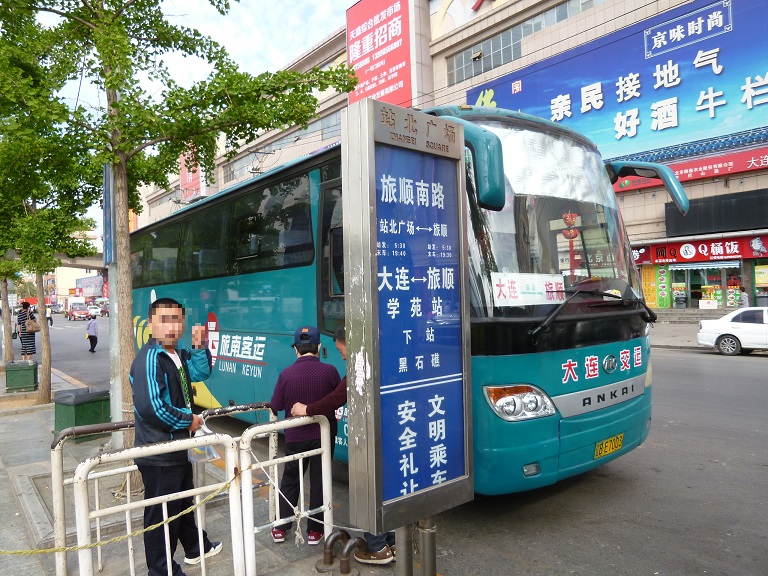 大連から旅順への移動に利用しました。大連からは大連駅北口広場の北西隅に停留所があり、チケットブースもそこにあります。片道7元(約120円)で約1時間10分ほどで到着しますので、非常にコストパフォーマンスは良いと思います。
