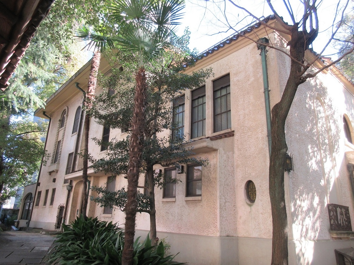 九段坂を上がった住宅や学校の集まるエリアを散策した際、【フィリピン大使公邸】や【九段教会】の近くにある、こちらの【九段ハウス】に立ち寄りました。昭和のはじめ、1927年に山口萬吉という財界人の邸宅として建築された洋館で、私が訪問した時には、丁度イベントが開催されていてお庭にも入ることが出来ました。屋根のひさしの構造や、アーチを取り入れた窓のかたちなど、南欧をも思わせるような外観で見ごたえ十分でした。