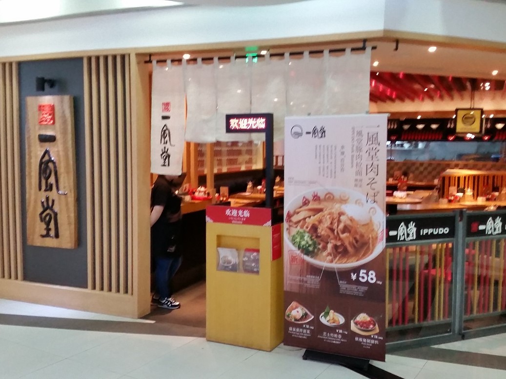 美羅城地下はラーメンなど大衆的日本料理の激戦区です。博多一幸舎も通路を挟んだ向かいにオープンしましたし、ラーメン意外にもパスタやうどんなど、麺系を中心に日本の大衆料理のお店が軒を連ねています。お値段は大体1000円前後なので、1000円ちょっとオーバー位の予算で行かれると良いと思います。一風堂は南京西路にも店がありますし、地元でも随分と知られています。