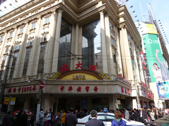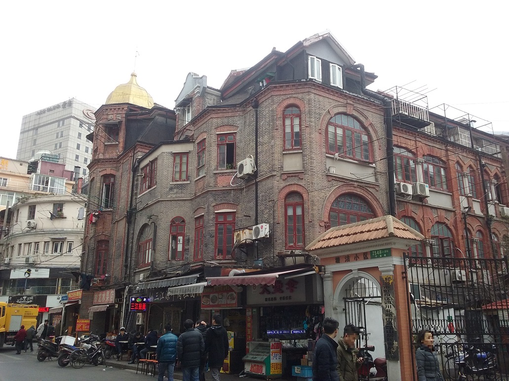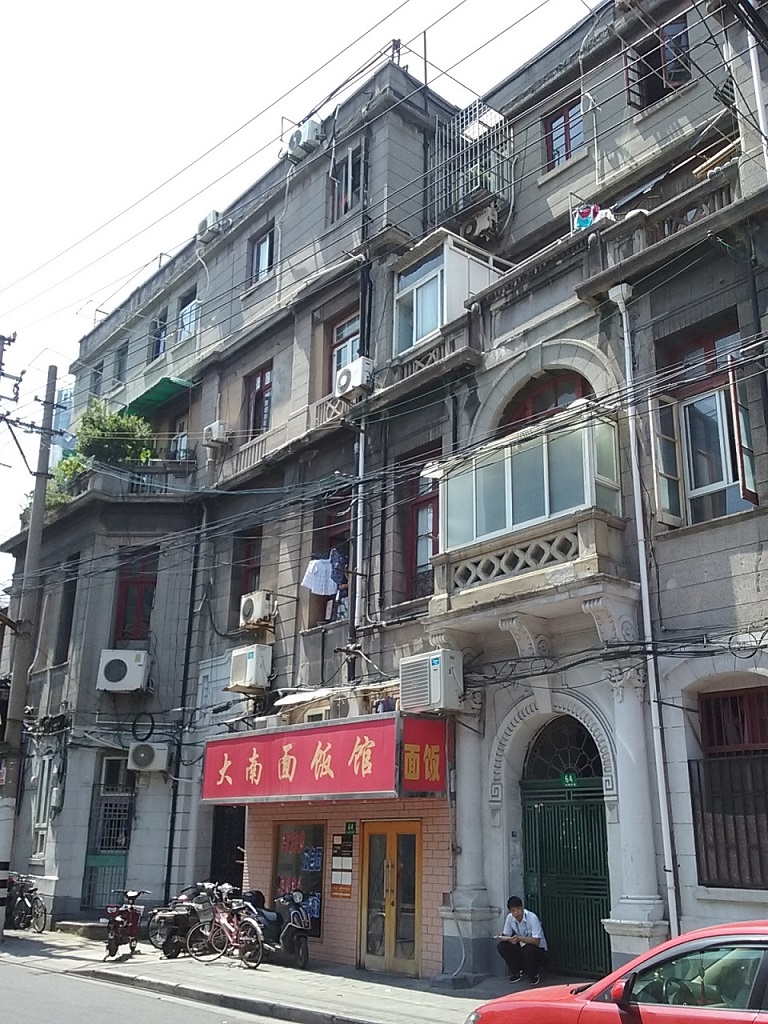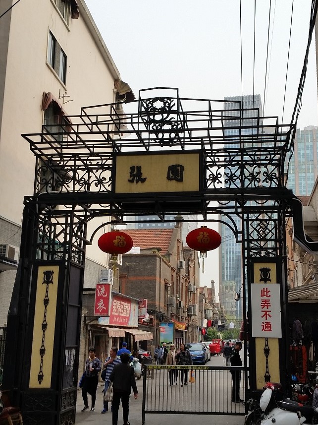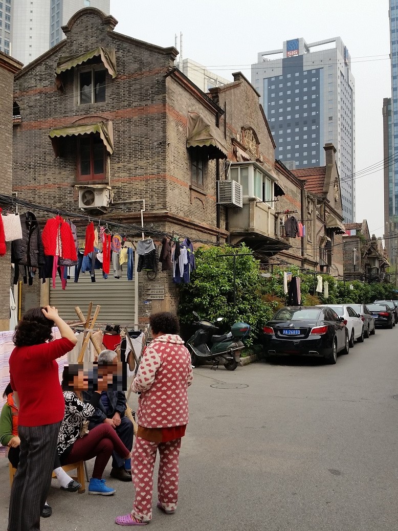 地下鉄南京西路駅周辺は、近代的な街と隣り合うようにして古い町並みが残っています。