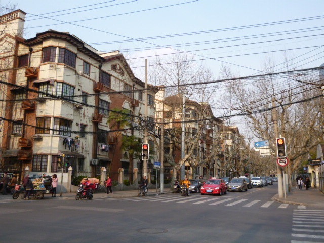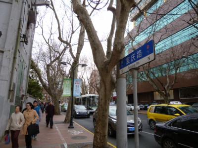 延安西路から新楽路、東湖路の交差点まで伸びる通りで、瀟洒な住宅が残ります。