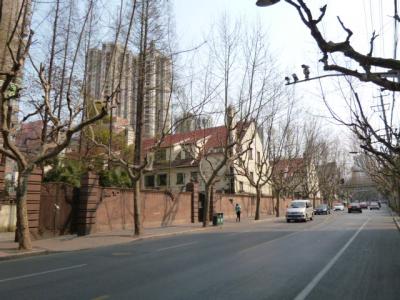 中山西路から東へ歩くと、豪邸や瀟洒な共同住宅が残っています。